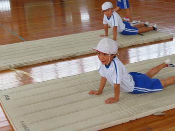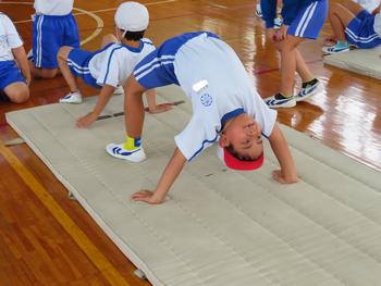 ブリッジやアシカ歩き、前転がりなど、いろいろな運動遊びにチャレンジしました。