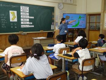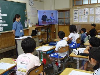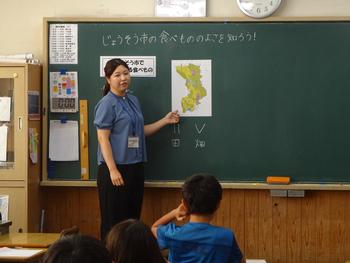 本日、3年生は、栄養教諭の先生より「じょうそう市の食べもののよさを知ろう」をめあてに食育指導をしていただきました。