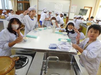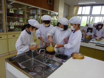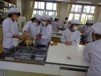 5の1、家庭科調理実習の授業の様子です。