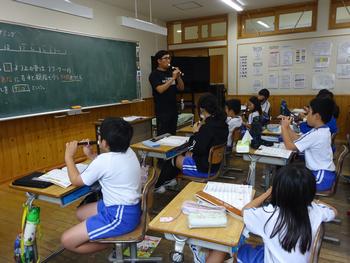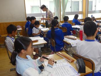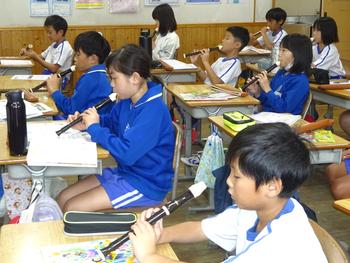 4の1、音楽「サミングにちょう戦しよう」の授業の様子です。