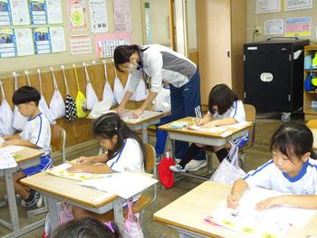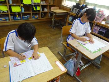 みんなで空書きをした後、漢字ドリルやドリルノートにていねいに漢字の練習をしました。