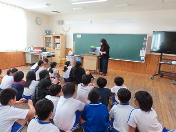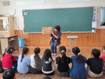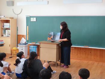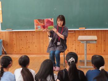今日は、5年生の教室でボランティアの保護者による読み聞かせが行われました。