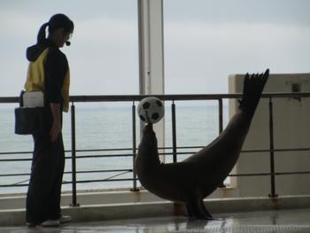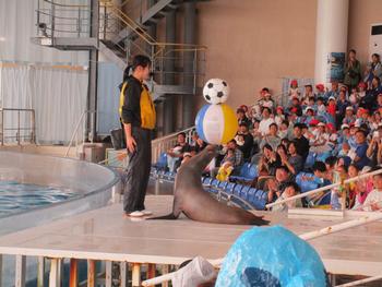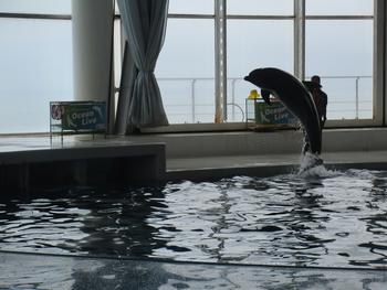 お弁当やおやつを食べた後は、アシカとイルカのオーシャンライブを見ました。