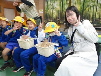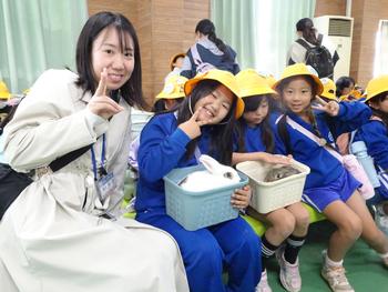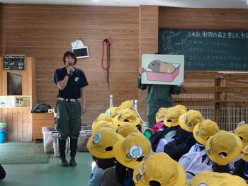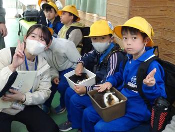 到着後、ふれあい動物教室に参加しました。集合写真も撮りました。