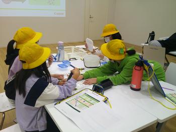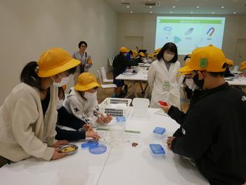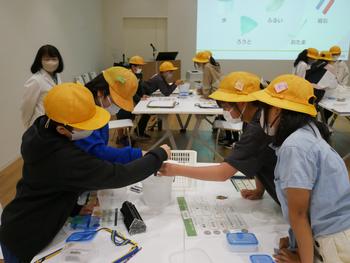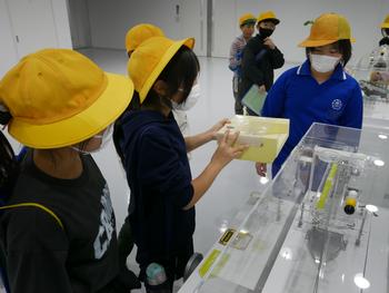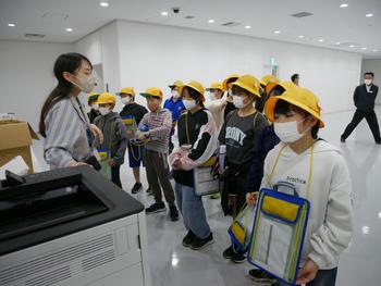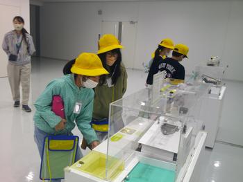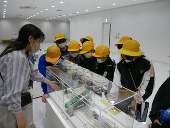 工場見学の際には、代表者が体験装置を操作する活動も行いました。