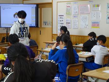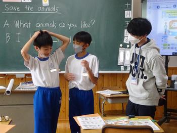 6の2、外国語「Unit6 Save the animals.」の授業の様子です。