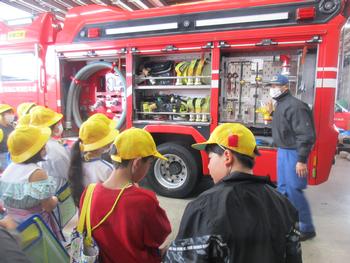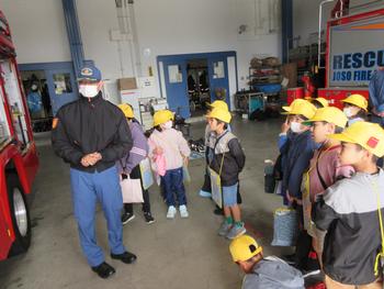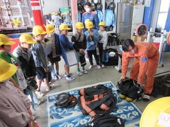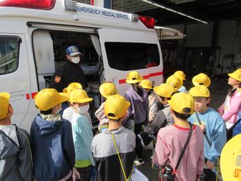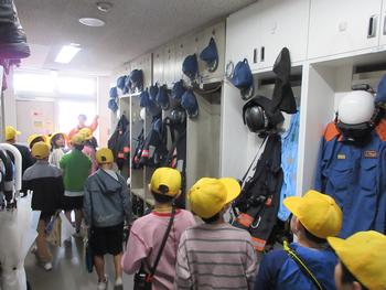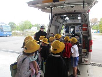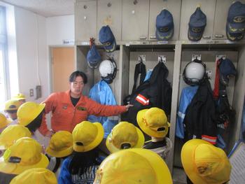 消防署内の部屋や救急車、消防車など、消防署員の方々にていねいに説明をしていただきながら、見学をさせていただきました。