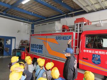 今日、3年生は、水海道消防署に社会科見学に行きました。