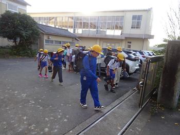 下校するみんなからも「さようなら」というあいさつが返ってきました。