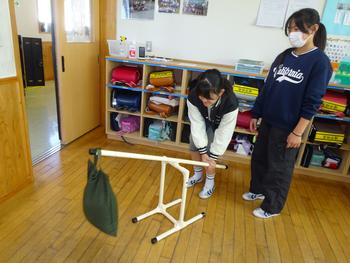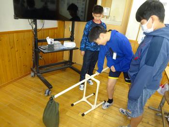 「てこ」「作用点」「支点」「力点」の学習をした後、まず、力点の位置を変えたときの手ごたえを調べました。