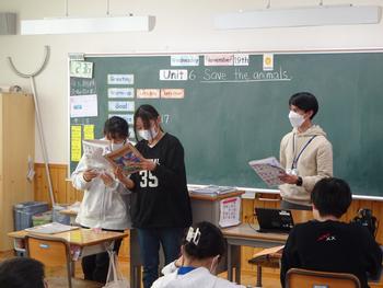 6の1、外国語「Unit6 Save the animals.」の授業の様子です。