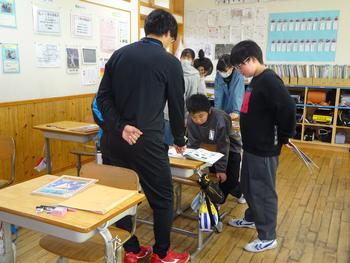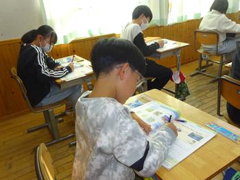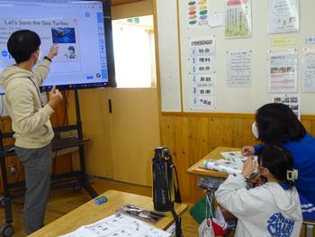 次のLet's Readでは、「Let's Save the Sea Turtles.」の英文を自分で読み、分かったことを教科書に書き込んだ後、友達と交流しました。