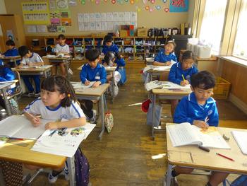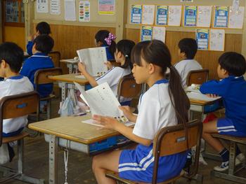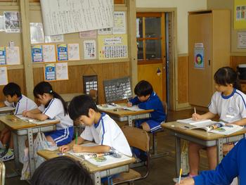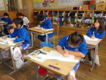 わし・えび・かめ・くじらが出てくるお話で、思い思いに自分がおもしろいと思った場面をノートにまとめていました。