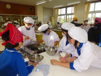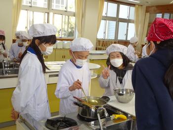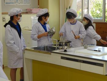 5の2、家庭科「食べて元気!ご飯とみそ汁」の様子です。