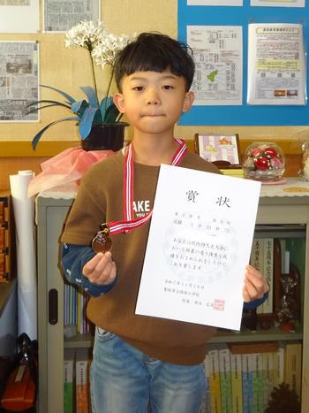 昨日の持久走大会の表彰式を欠席した入賞者に、今日、校長室で表彰を行いました。