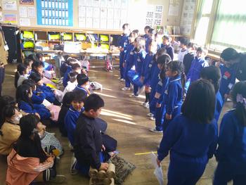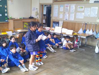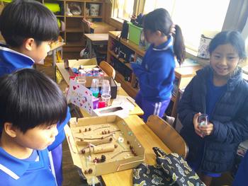 今日は、1年生が2年生を招待して、1年生が作ったおもちゃで、2年生と楽しく遊びました。