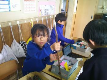 5時間目、1年生生活科「あきのおもちゃまつりをしよう」の学習の様子です。