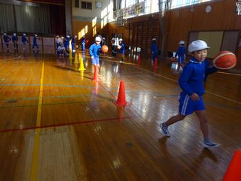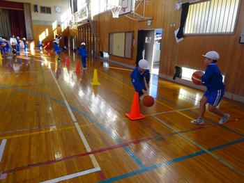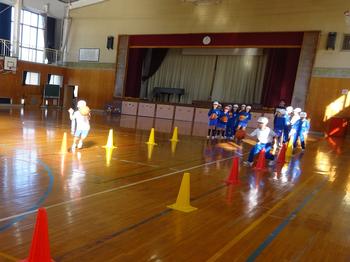 次に、2チームに分かれ、ドリブルリレーをしました。