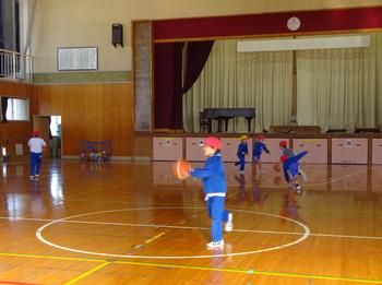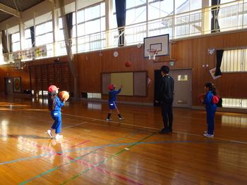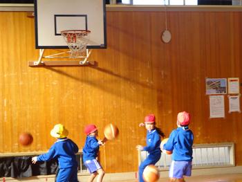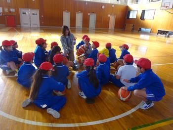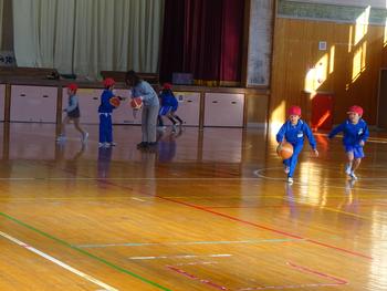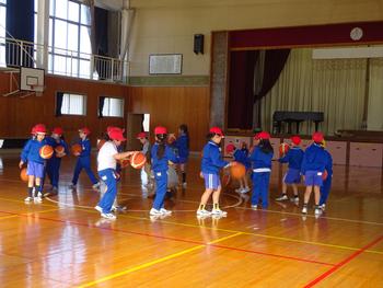 シュート練習をした後、ルールの確認をし、ドリブルおにごっことシュートゲームをしました。