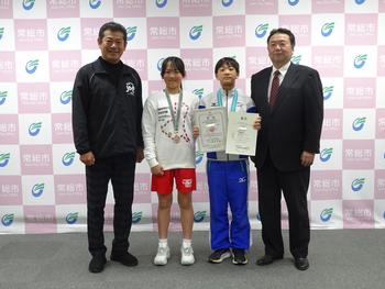 25日、令和7年度全国大会に出場した絹西小学校の2名の児童が、常総市役所に市長表敬訪問に伺いました。