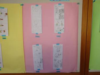 昨日まで、図書室の廊下には、4コマ漫画コンテストの出品作品が飾られていました。