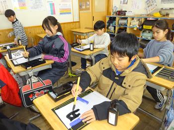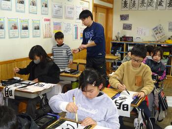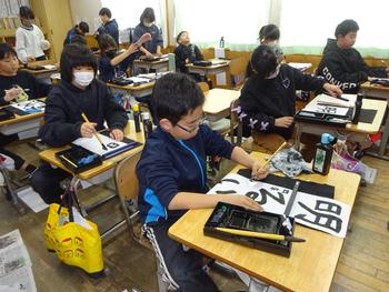 4の2、書き初め大会の様子です。