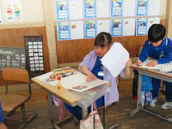 家族にインタビューしたことを書いたり、写真を貼ったりして、自分だけのオリジナルの本を作っていました。