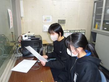 かぜやインフルエンザの流行にともない、昼休みに、保健委員さんが感染症予防の放送をしている様子です。