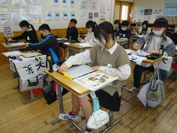 「『福』を呼びこむ、『笑』の書を書こう」をめあてに学習しました。