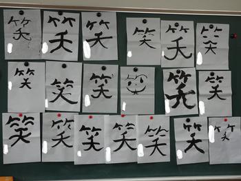 一人一人が、思い思いに、すてきな『笑』の書を書く姿が見られました。