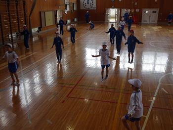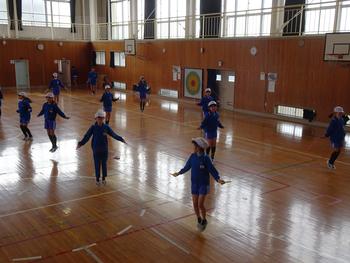 4時間目、体育館で、4の2のなわとびチャレンジが行われました。