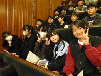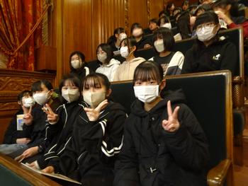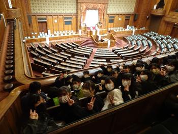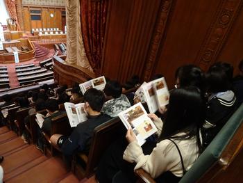 午前中は国会議事堂の見学を行い、参議院本会議場で説明を聞きました。