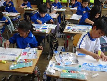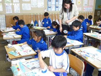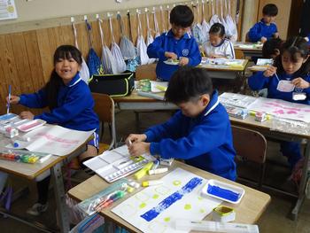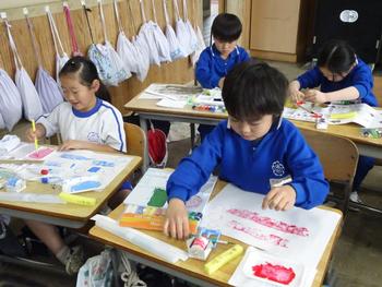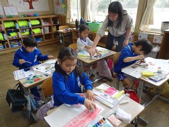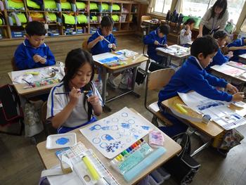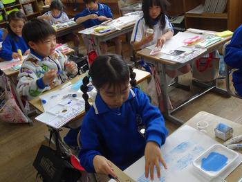 1の2、図工「ぺったん コロコロ」の授業の様子です。