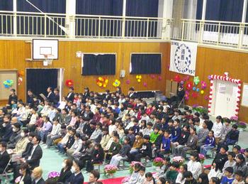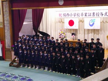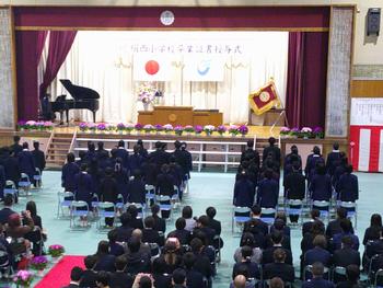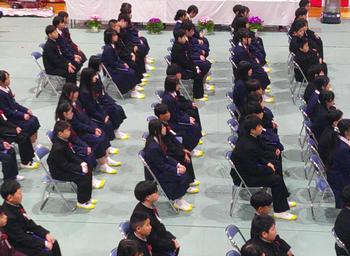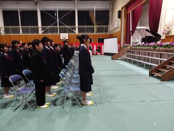 卒業生のピアノ伴奏のもと、卒業生、在校生、職員で歌った校歌も心に響きました。