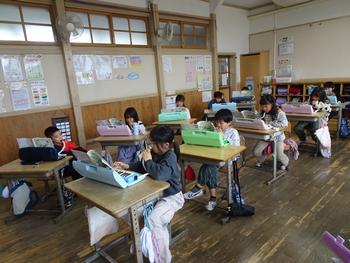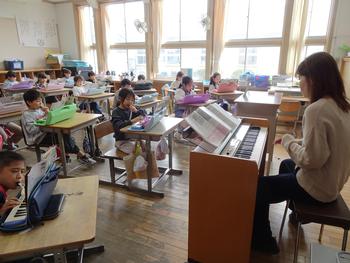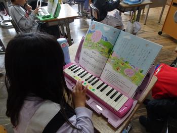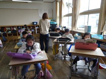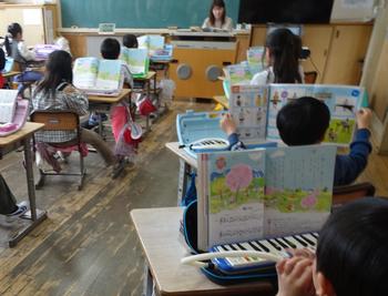 鍵盤ハーモニカで、今まで学習した曲をみんなで演奏していました。