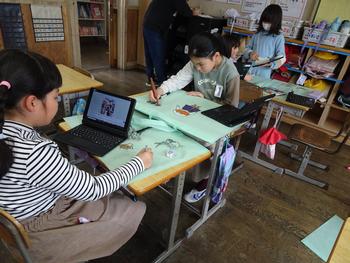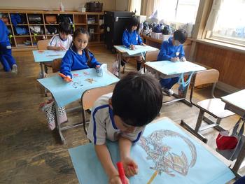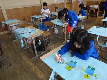 今までに作った図工の作品や書写の作品などを入れる自分だけのオリジナルバックを作っていました。