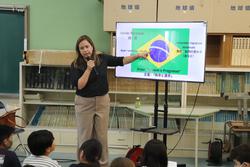 5年生の総合的な学習の時間の様子です。今日はブラジル総領事館の職員の方に来校していただき、ブラジルという国や、首都ブラジリアの成り立ちについてお話していただきました。5年生はしっかり話を聞き、積極的に質問していました。ブラジルをはじめ、いろいろな国々に興味をもてるよう、学習を深めていきたいと思います。