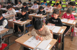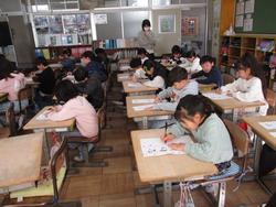 1年生と2年生の書き初め会が各教室で行われました。2学期末にそれぞれが考えた目標を、冬休み中に練習してきました。本番では、練習の成果を発揮して、位置文字位置文字心を込めて書きました。