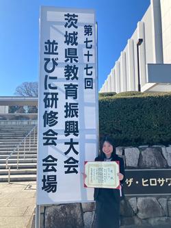 水戸のザ・ヒロサワシティ会館で茨城県教育振興大会が行われ、その中で教育論文の表彰式がありました。本校職員が、音楽指導に関する論文で表彰されました。