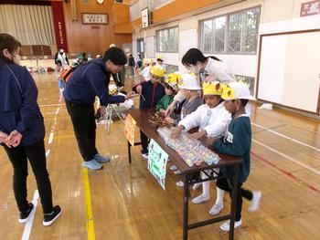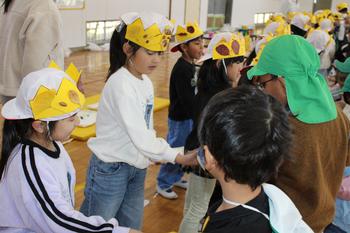 本日(11/19)の2~3時間目、1年生は、にじいろ幼稚園とさくら保育園の園児さんをお迎えして「なかよし会」を行いました。