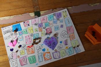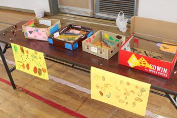 どんぐりや落ち葉などの秋を感じる物をつかって自分たちで作ったおもちゃで遊んだり、しおりのプレゼントを渡したりしました。