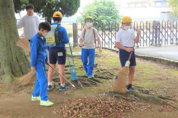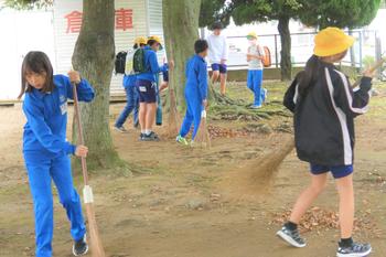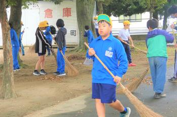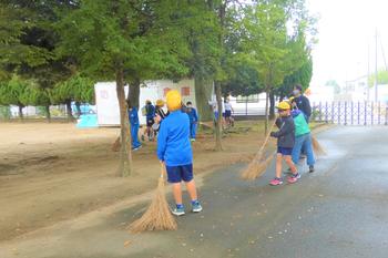 朝早く登校した4・5・6年生が、ボランティアで落ち葉掃きをしてくれました。