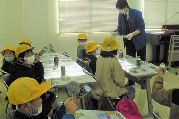 警察署では、パトカーに乗せていただいて、その仕組みや秘密を教えてもらったり、指紋検出の体験をしたりしました。