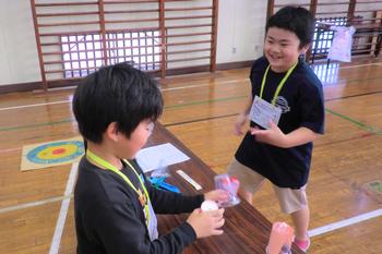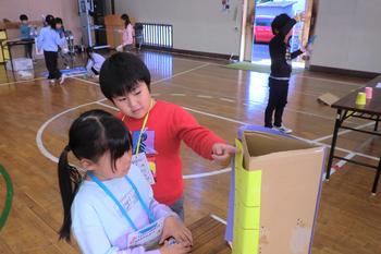 工夫を凝らしたおもちゃが店先に並び、お客さんになった子供たちはワクワクした様子で手に取り、何度もチャレンジしていました。