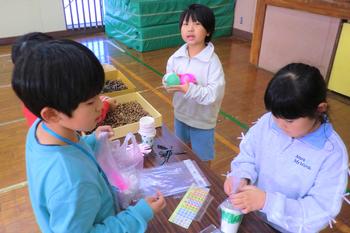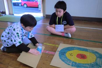 子供たちは、自分たちで作ったおもちゃを使い、お店屋さんとお客さんの役割に分かれて楽しみました。
