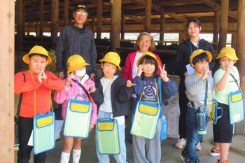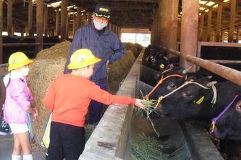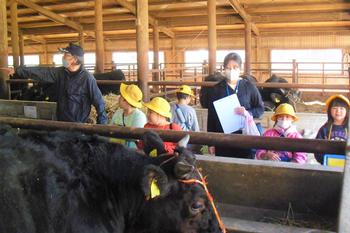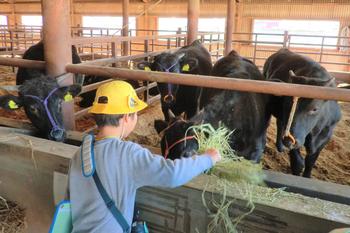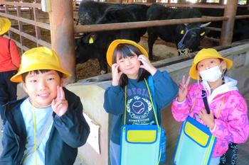 続いて訪れた塚田畜産さんでは、餌やり体験を通して牛と触れ合うことができ、子どもたちにとって大変貴重な体験となりました。体験後には、ある児童が「命をいただくから、『いただきます』を心を込めて言わないといけないんだね」とつぶやく姿も見られ、学びを生活に結び付ける素敵な気付きが生まれていました。