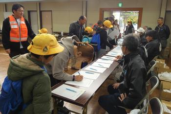 豊田地域コミュニティ協議会主催、豊田地域の住民の皆様のご参加のもと、豊田地区全域で防災訓練を実施しました。午前9時の防災無線による地震を想定した避難指示を受け、豊田小学校の体育館に避難所を開設し、地域の皆様が避難されました。