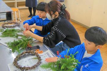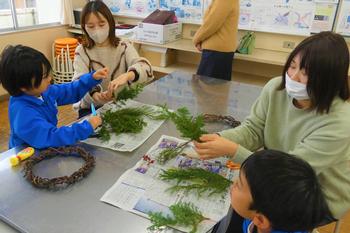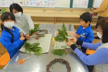リース作りでは、親子で協力しながら思い思いの飾り付けに取り組み、完成した瞬間には笑顔があふれていました。どの作品も季節を感じる素敵な仕上がりとなりました。