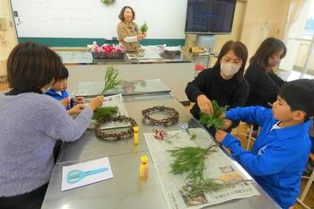 家庭教育学級の活動を実施しました。今回は、花屋花子の岡田先生によるリース作りと、市教育委員会生涯学習課の柴田先生による人権教育講話を行いました。