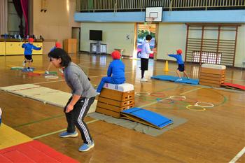1年生は「跳び箱を使った運動遊び」に取り組みました。わくわくする場の設定の中で、にこにこ顔で意欲的に活動する子供たちの姿が見られました。体をいっぱい使って思い切り楽しむ様子が印象的でした。